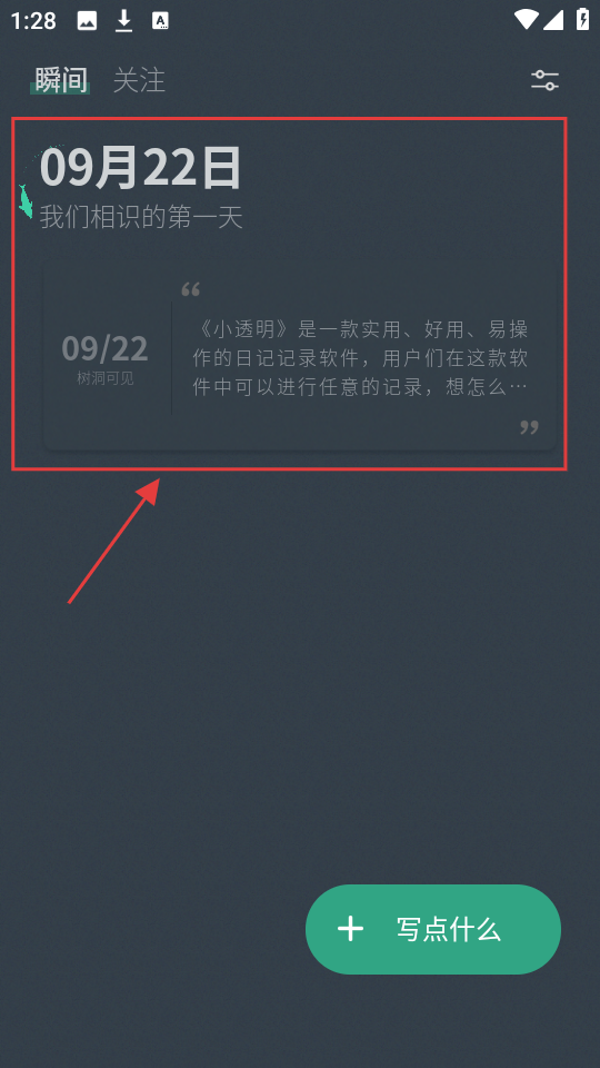1、在软件的主界面,有个【+写点什么】的按钮,点击它就能进入日记编辑页面啦。