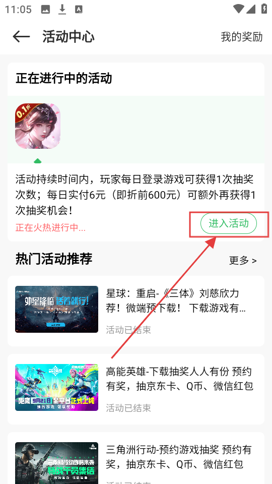 3、在活动中心找到感兴趣的活动,点击【进入活动】,就能参与活动赢取奖励啦。
