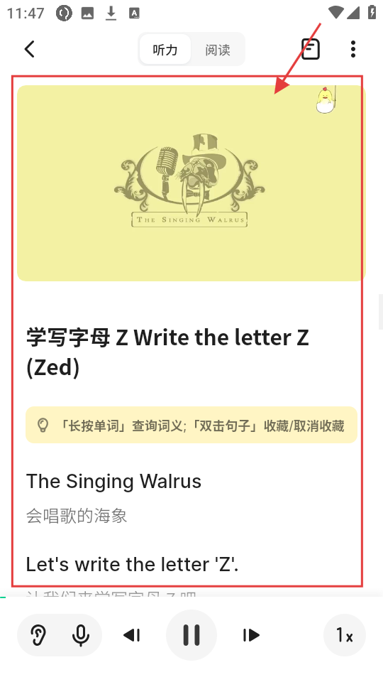 4、进入课程后就能开始学习【学写字母Z-Write-the-letter-Z-(Zed)】啦,跟着课程学超方便的哟。