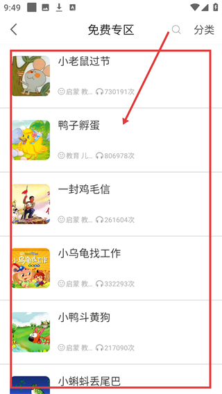 2、进入免费专区列表后,选择目标故事(比如【小乌龟找工作】),就能进入该故事的播放页面哦。
