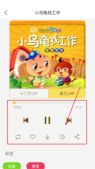 2、设置了多种故事播放小工具,其中有收藏、循环播放、下载以及分享等工具图标满足你。