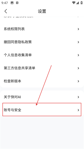 2、进入设置页面后,选择【账号与安全】选项,跳转至对应的管理界面,能处理账号安全相关操作哦。
