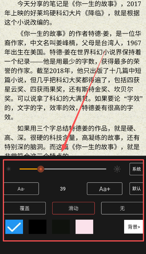 4、阅读设置选项允许用户自由调整界面背景和字体样式,打造最符合个人喜好的阅读环境,让您畅享无阻阅读乐趣。