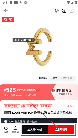 3、选中目标商品进入详情页后,点击【立即购买】按钮,就能进入下单流程啦。