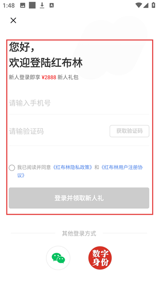 4、触发购买后会跳转到登录页,填写手机号+验证码并勾选协议,就能登录领新人礼啦。