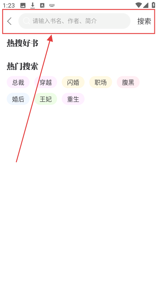 2、在搜索页面的输入框输入书名、作者或简介,点击【搜索】就能找到相关小说啦。