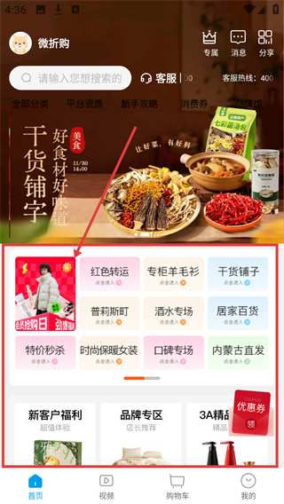 1、微折购用户购物前先领劵,提供更多的福利,在这里交易体验真的方便。