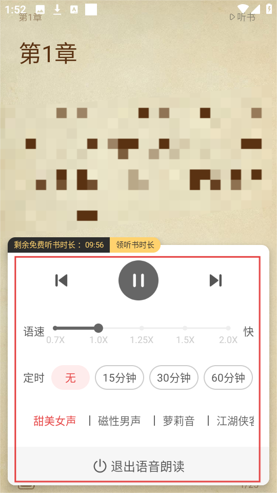 4、下载完成后,可调整语速、定时等听书设置,选择喜欢的语音风格,享受听书体验哦。