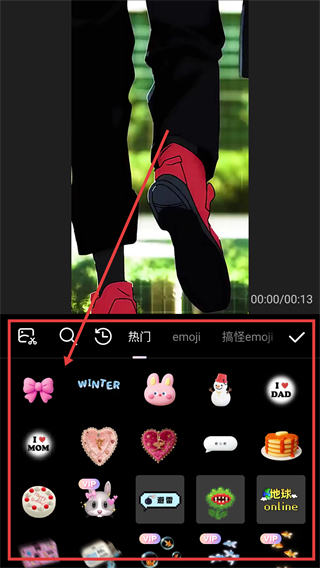 3、在贴纸列表里,选心仪的贴纸样式,就能将其添加到视频中,丰富画面效果哦。
