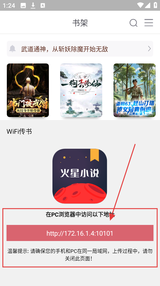 4、进入WiFi传书后,在PC浏览器访问给出的地址,就能完成传书,超简单的哦。