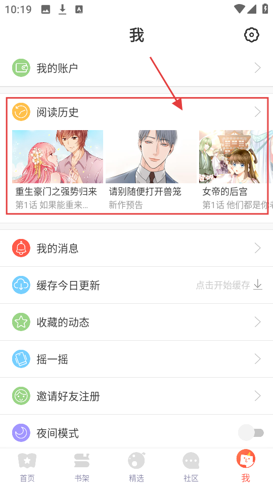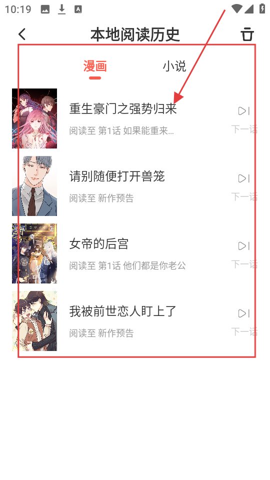 3、在本地阅读历史页面,能看到漫画和小说的阅读历史,挑选想继续看的点击,就能进入阅读啦。