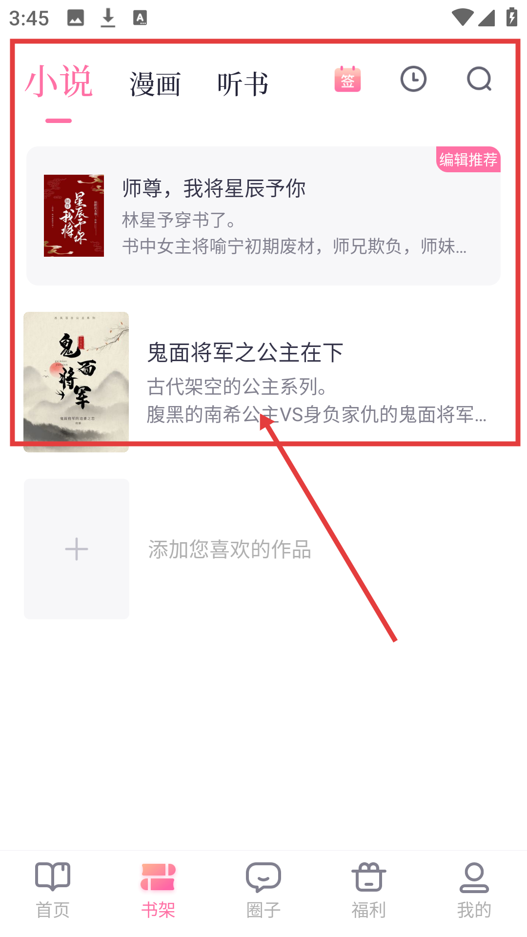4、去书架就能看到已加入的【鬼面将军之公主在下】,随时可点击阅读,超方便啦。