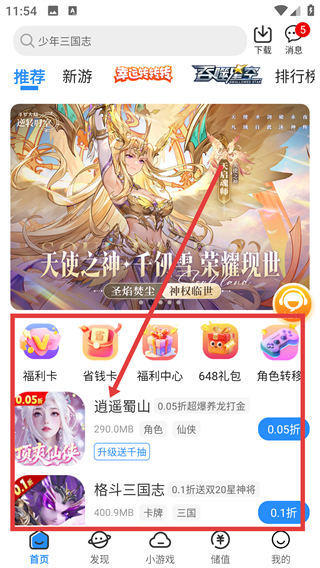 1、在首页找到目标游戏(比如【逍遥蜀山】),点击它就能进入游戏详情页面,查看游戏信息啦。
