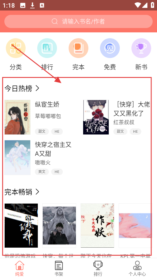 1、在首页选【今日热榜】里的小说,比如【[快穿]大佬又又黑化了】,点进去看详情吧。