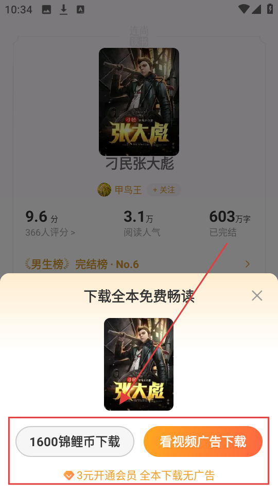 2、在《刁民张大彪》详情页,若想下载全本,点击顶部【下载全本】,即可进入下载相关界面哦。