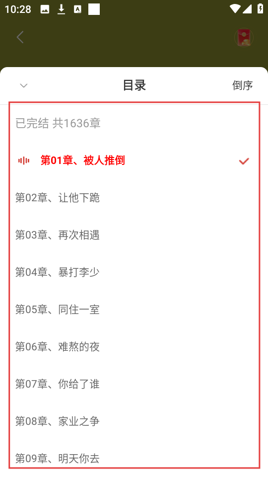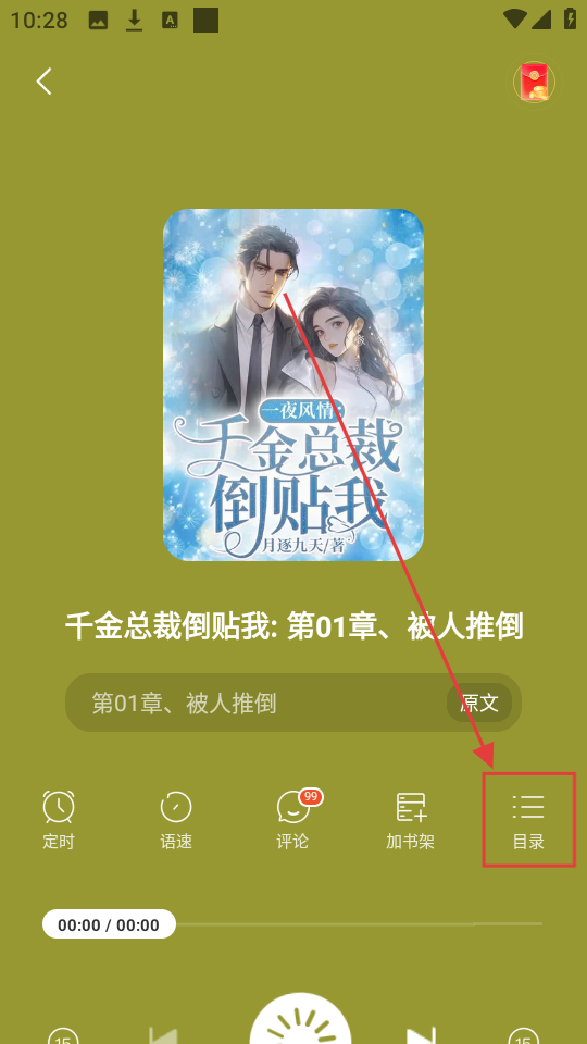 4、在目录页面,选择想听的章节,即可切换到对应章节进行听书,方便又快捷啦。