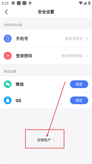 3、在安全设置页找到【注销账户】选项并点击,就能进入账户注销的风险提示界面啦。