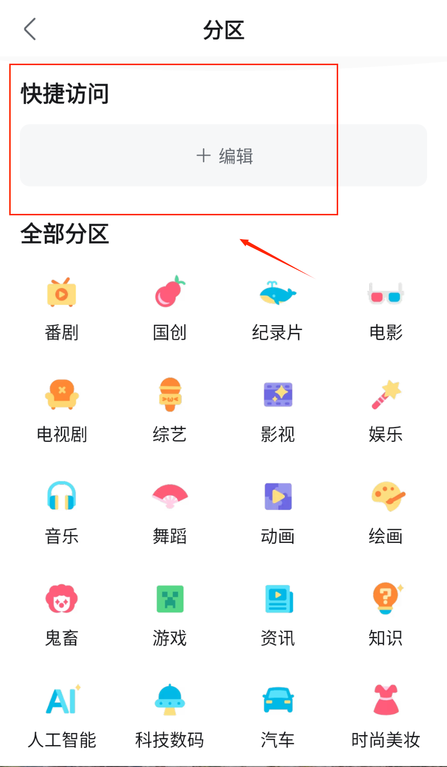 2、快捷访问区域可以添加常用分区,点击编辑按钮就能自定义,把最常看的分区放在显眼位置。