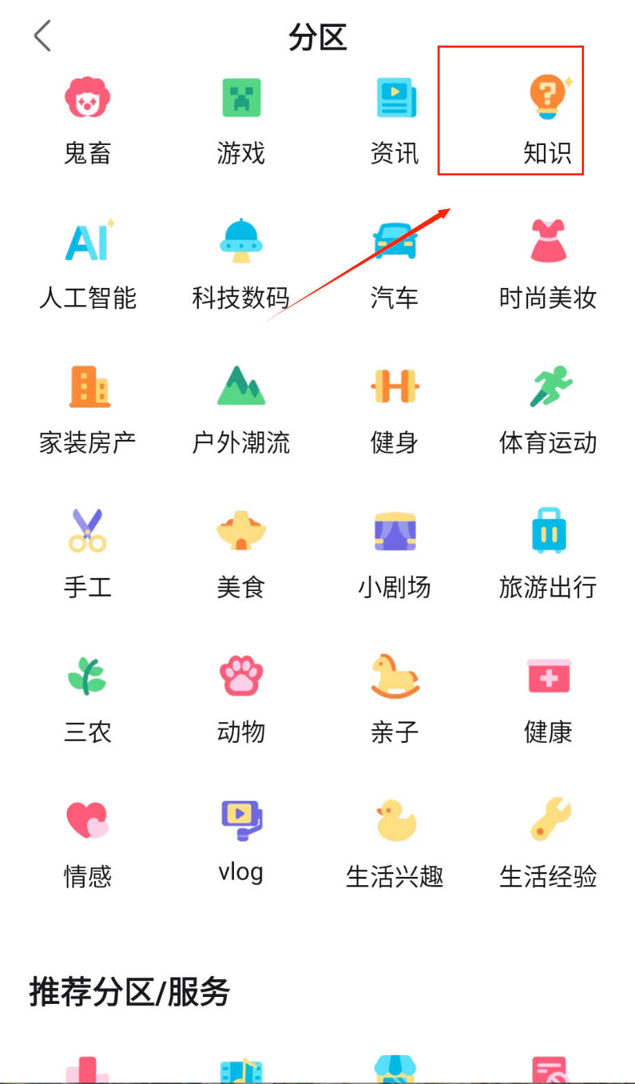 1、在分区页面可以看到全部分类,包括番剧、国创、纪录片等二十多个分区,每个分区都有专属内容。