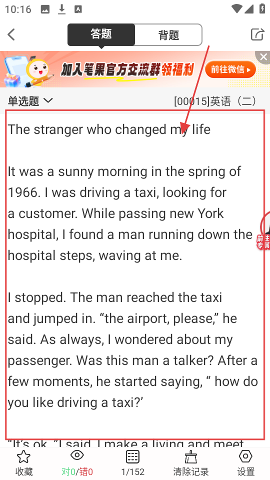 4、答题页面有英文阅读题,仔细阅读文章,就能答题,提升英语水平。