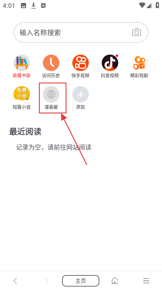 3、添加成功后,会出现新的图标,比如“漫画屋”,点击它,即可进入相关页面啦。