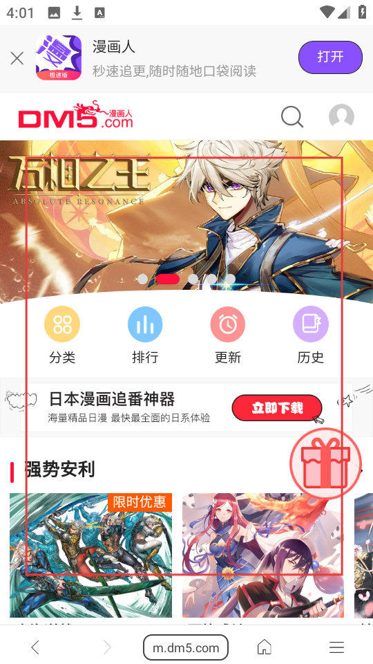 4、进入“漫画屋”页面,能看到各类漫画相关内容,若想浏览,可自由操作呢。
