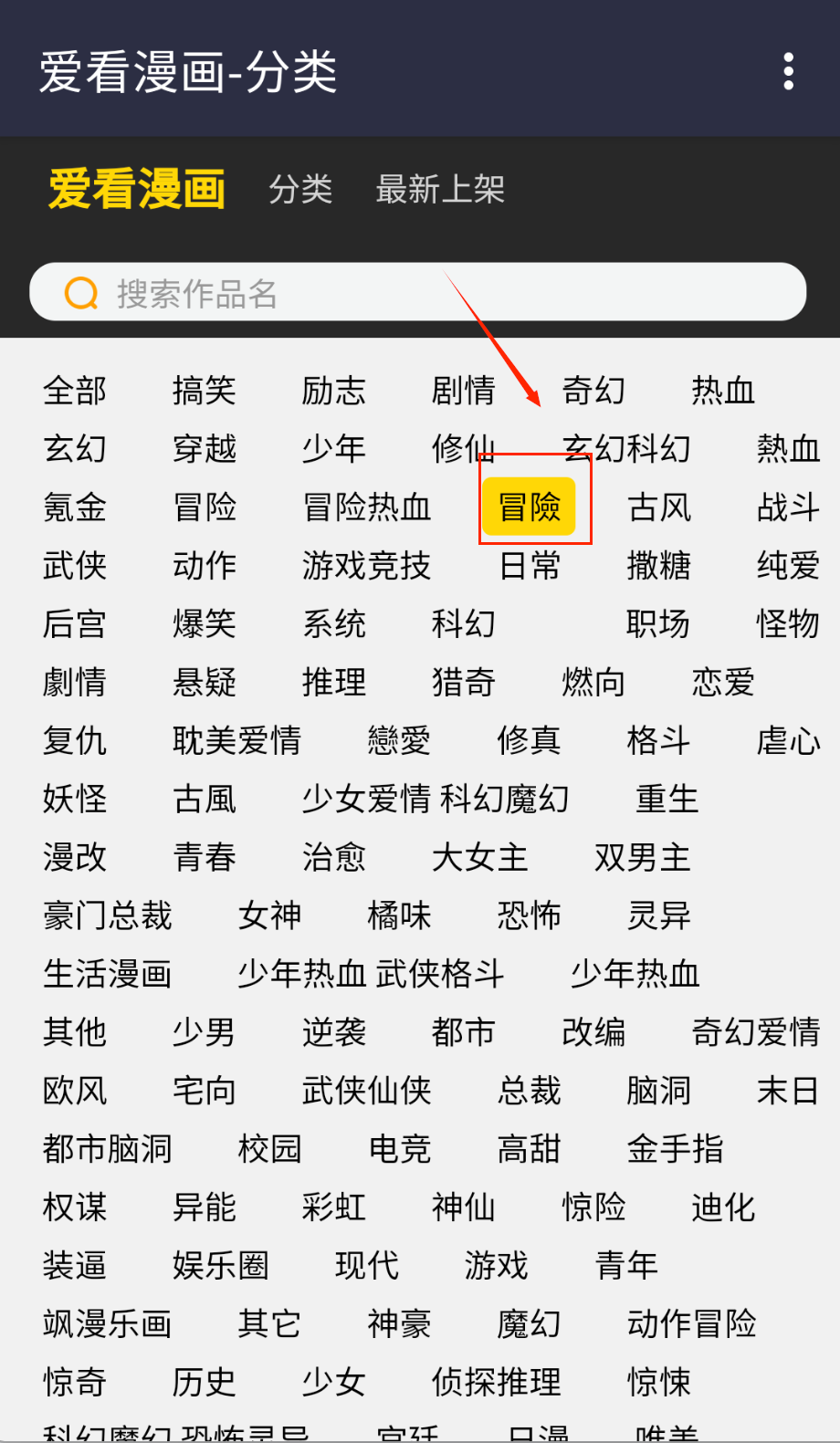 3、多个分类标签可以组合使用,比如先选"热血"再选"冒险",进一步缩小范围精准定位目标作品。