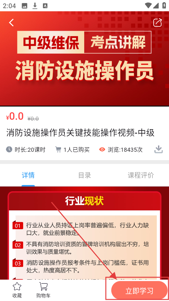 3、进入课程详情页,能查看课程相关信息,点击【立即学习】按钮,就可以开始学习课程内容啦。