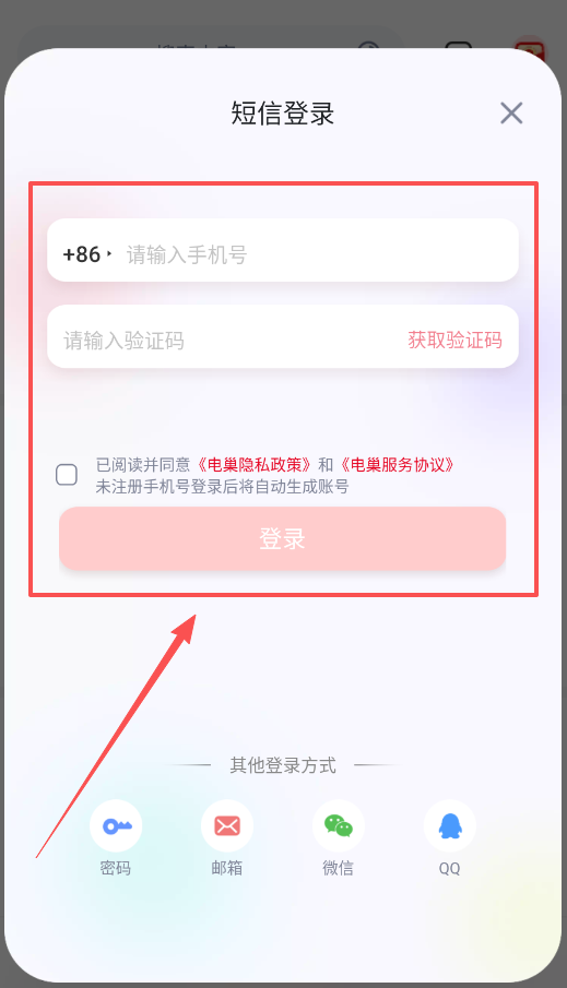 1、首先完成账号注册登录,输入手机号和验证码,登录后还能选择密码、邮箱或微信等其他登录方式呢。