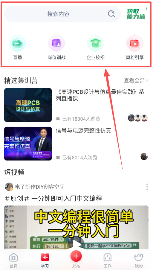 3、关注精选直播和短视频内容提升自己,在直播区能找到高速PCB设计与仿真系列课。