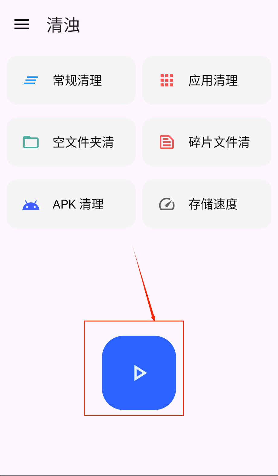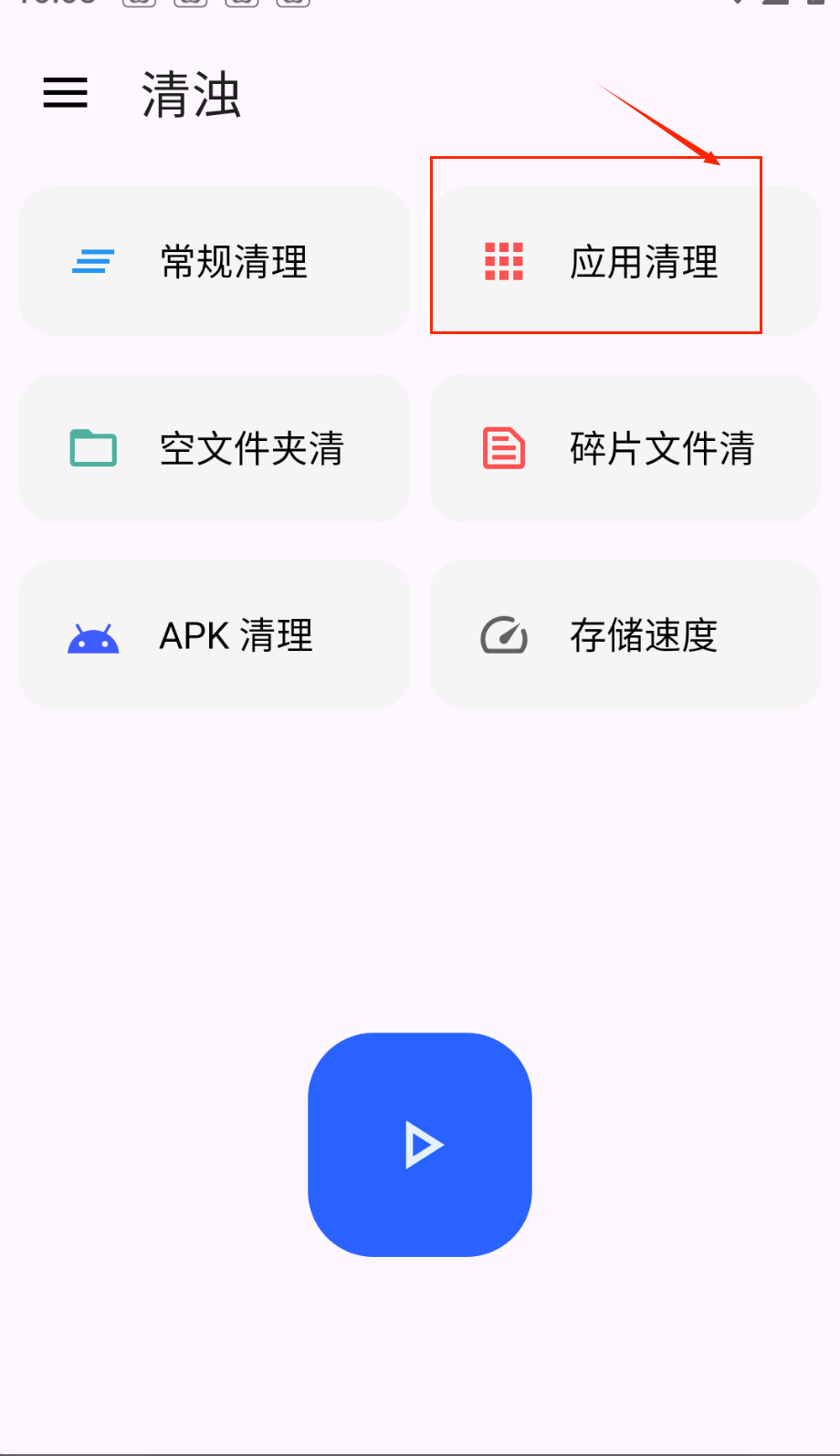 1、打开清浊软件后首先看到六个核心功能按钮,从上到下分别是常规清理、应用清理、空文件夹清理等,新手可以从常规清理开始体验。