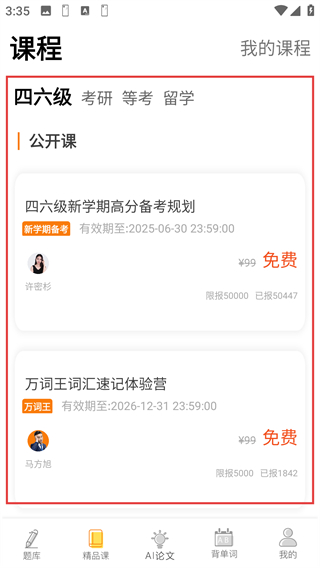 1、提供免费的课程包,用户可以详细的查看,及时的进行报名学习体验。