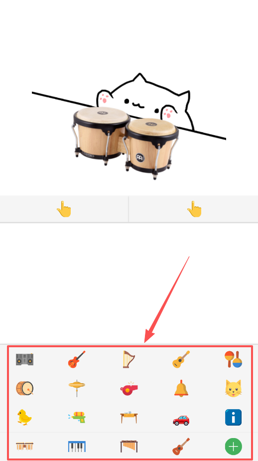 3、你可以尝试不同乐器组合,用吉他拨弦编写一段小曲,或是敲打鼓面来一段节奏,过程中猫咪的动画始终伴随音乐变化。