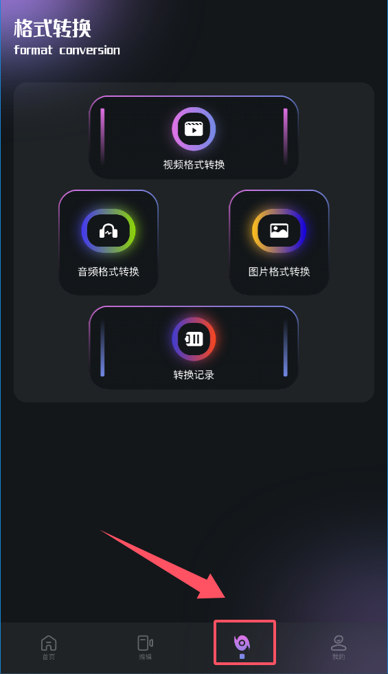 3、“转换”页面专门处理格式,无论是“视频格式转换”、“音频格式转换”还是“图片格式转换”,都能轻松搞定,并且有“转换记录”可查。