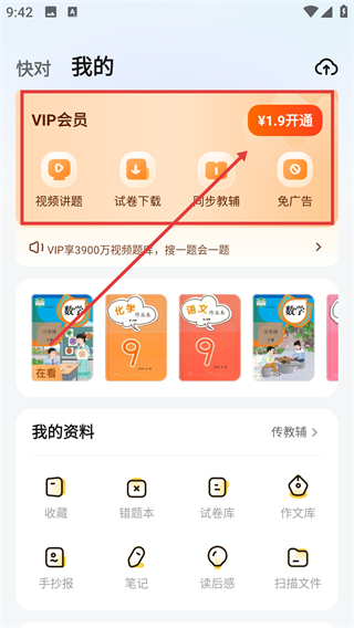 1、在快对的【我的】页面,能看到各类学习功能入口哦。