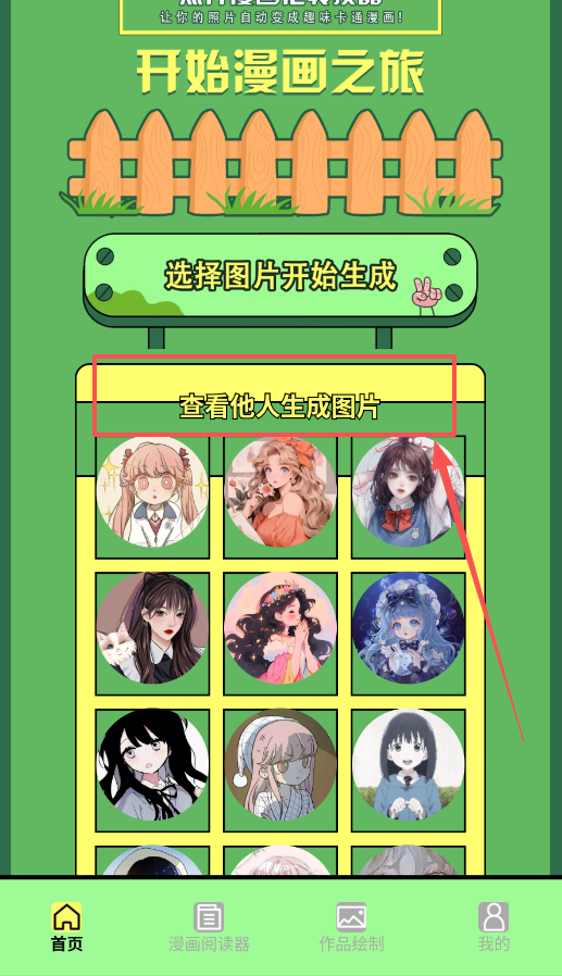 2、快速生成漫画有捷径,使用“开始漫画之旅”功能,选择本地图片一键转换风格,生成后别忘了进入社区“查看他人生成图片”。