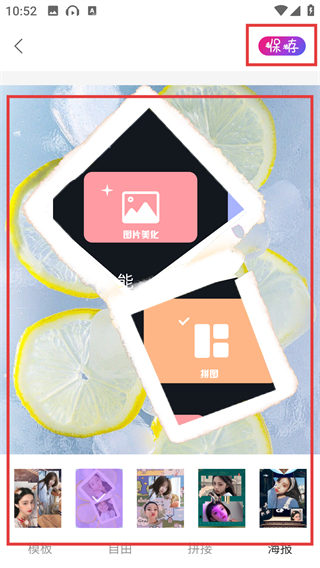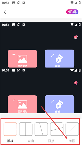 2、进入拼图页后,选底部的【海报】模板类型,就能切换到对应的拼图样式,打造好看的排版哦。