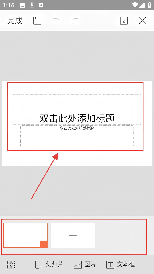 4、创建好空白演示文稿后,就进入了编辑界面,这里有“双击此处添加标题”等提示区域,可开始编辑内容啦。