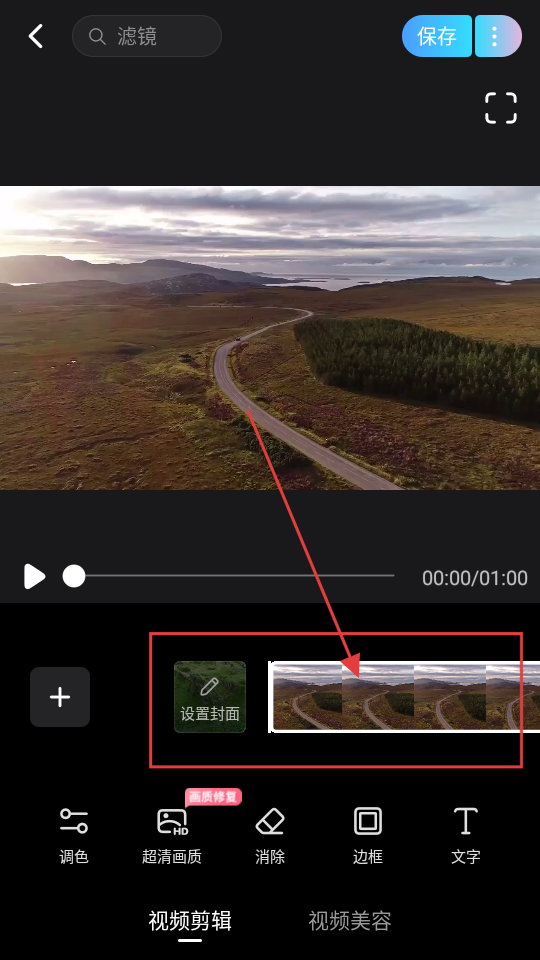 1、进入视频剪辑界面,可对视频进行剪辑,还能设置封面,让视频更具个性哦。