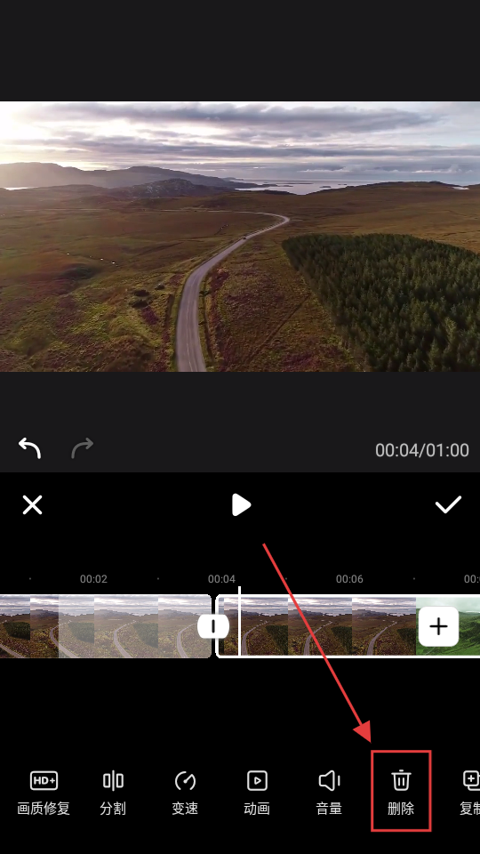 3、选中不需要的视频片段,点击【删除】,即可移除该片段,精简视频内容哦。