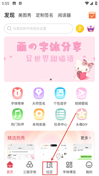 1、在首页点底部【社区】选项,能进入社区页面,后续可探索各类专区的资源内容啦。