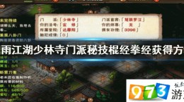 烟雨江湖少林寺门派秘技棍经拳经怎么得 少林寺门派秘技棍经拳经获取方法