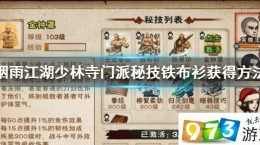 烟雨江湖少林寺门派秘技铁布衫怎么得 铁布衫详解