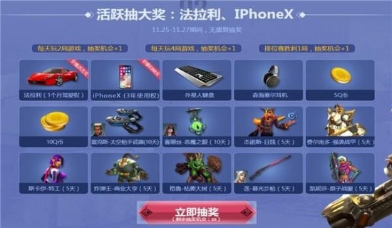 【1】11.25登录即享活跃抽大奖:法拉利、IPhoneX11.25-11.27期间,无重复抽奖.