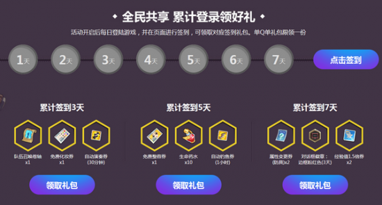 活动开启后每日登陆游戏,并在页面进行签到,可领取对应签到礼包。单Q单礼包限领一份