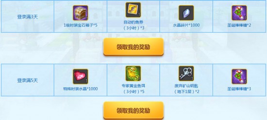 活动期间,30级及以上的角色登录天数满3天、5天可获得惊喜礼,请在活动结束后通过本页面领取。