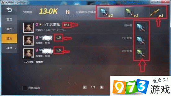 点击好友游戏空间内的留言选项,会弹出好友近期收到留言的详情状态以及所收到的礼物信息,每位留言者名字后面都有守护者的等级后缀,空间内的守护展示是按照此等级高低排名的,高等级的获取当然就是意味着你要打赏好友贵重的小礼品了。