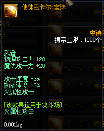 属性:物理/魔法攻击力+20,攻击速度/ 释放速度 +3%,火属性攻击