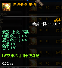 属性:物理攻击力+35,魔法攻击力+35, 力量+50,智力+50