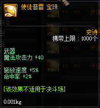 属性:魔法攻击力+40,施放速度+5%, 命中率+2%